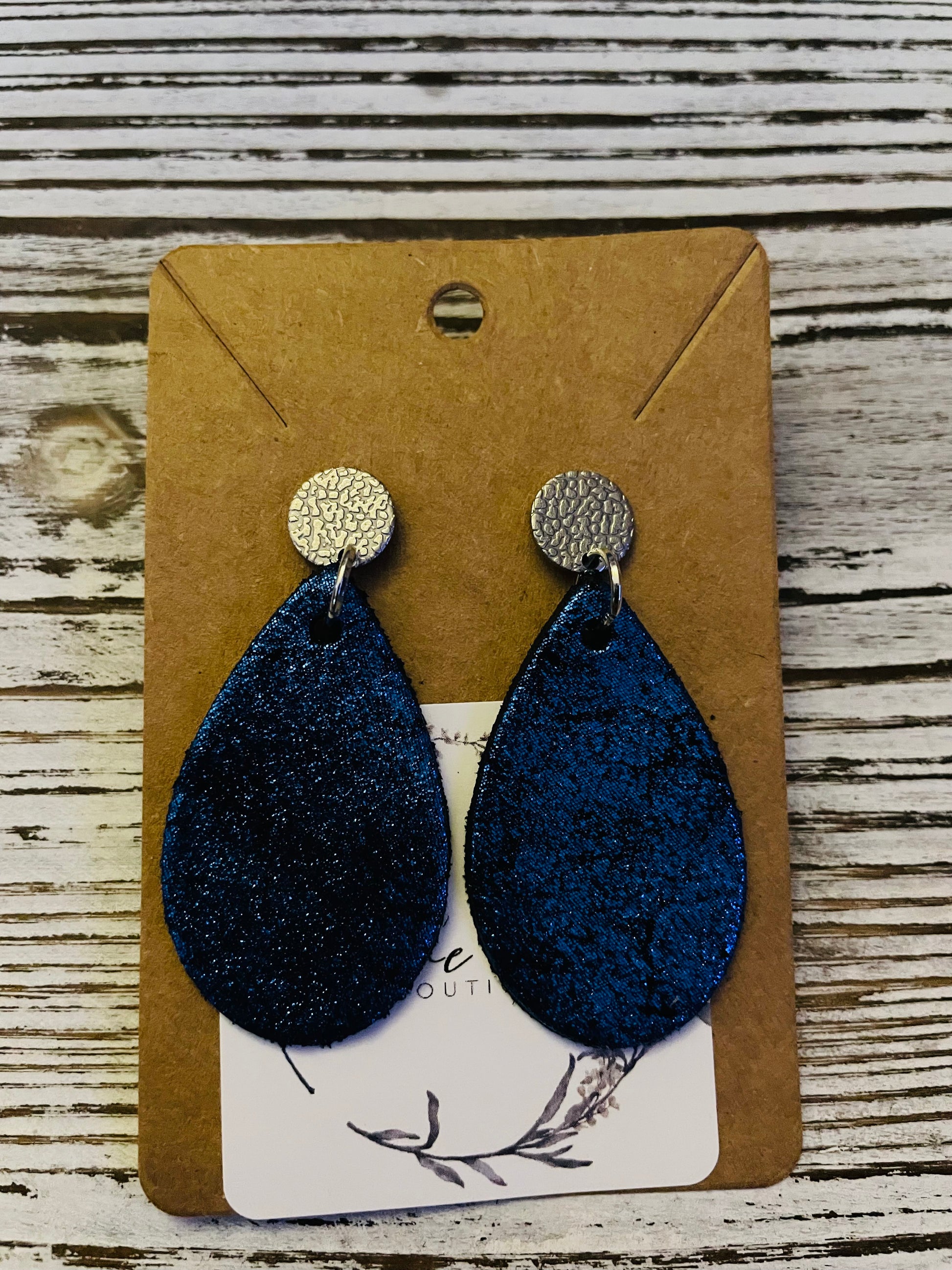 Blue glitter leather on a silver embellished setting.